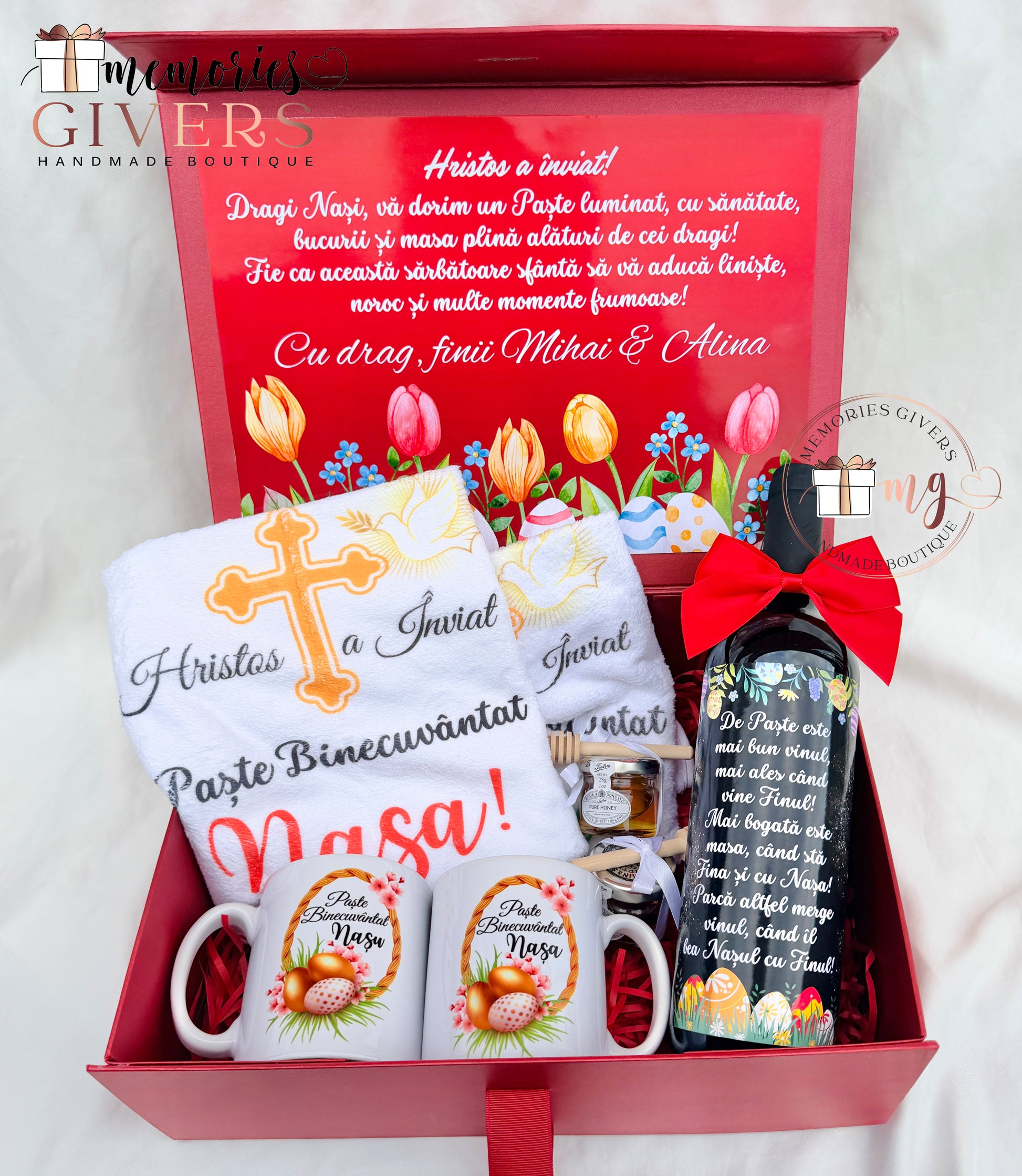 Cutie cu 2 căni, sticlă & 2 prosoape de mâini