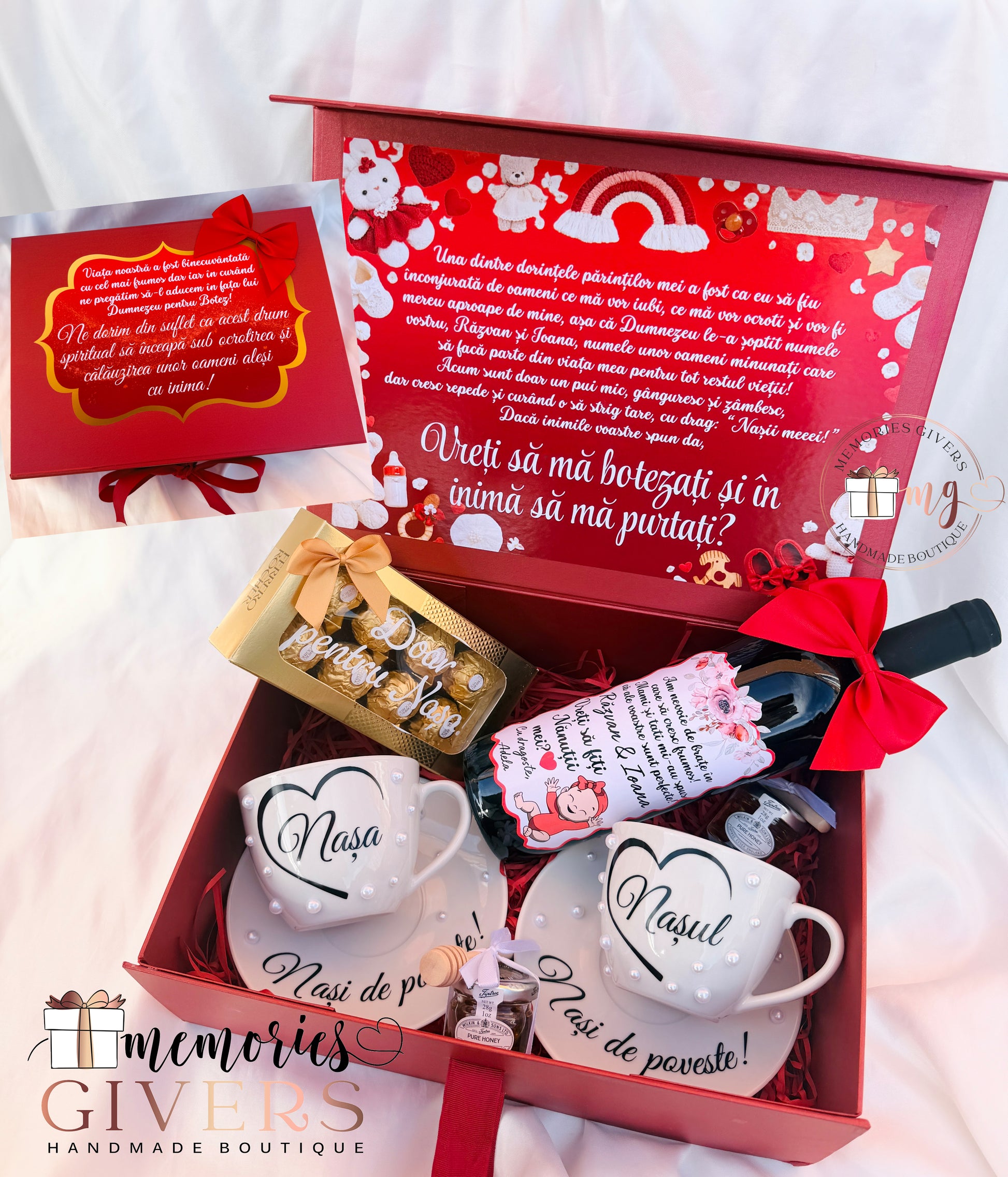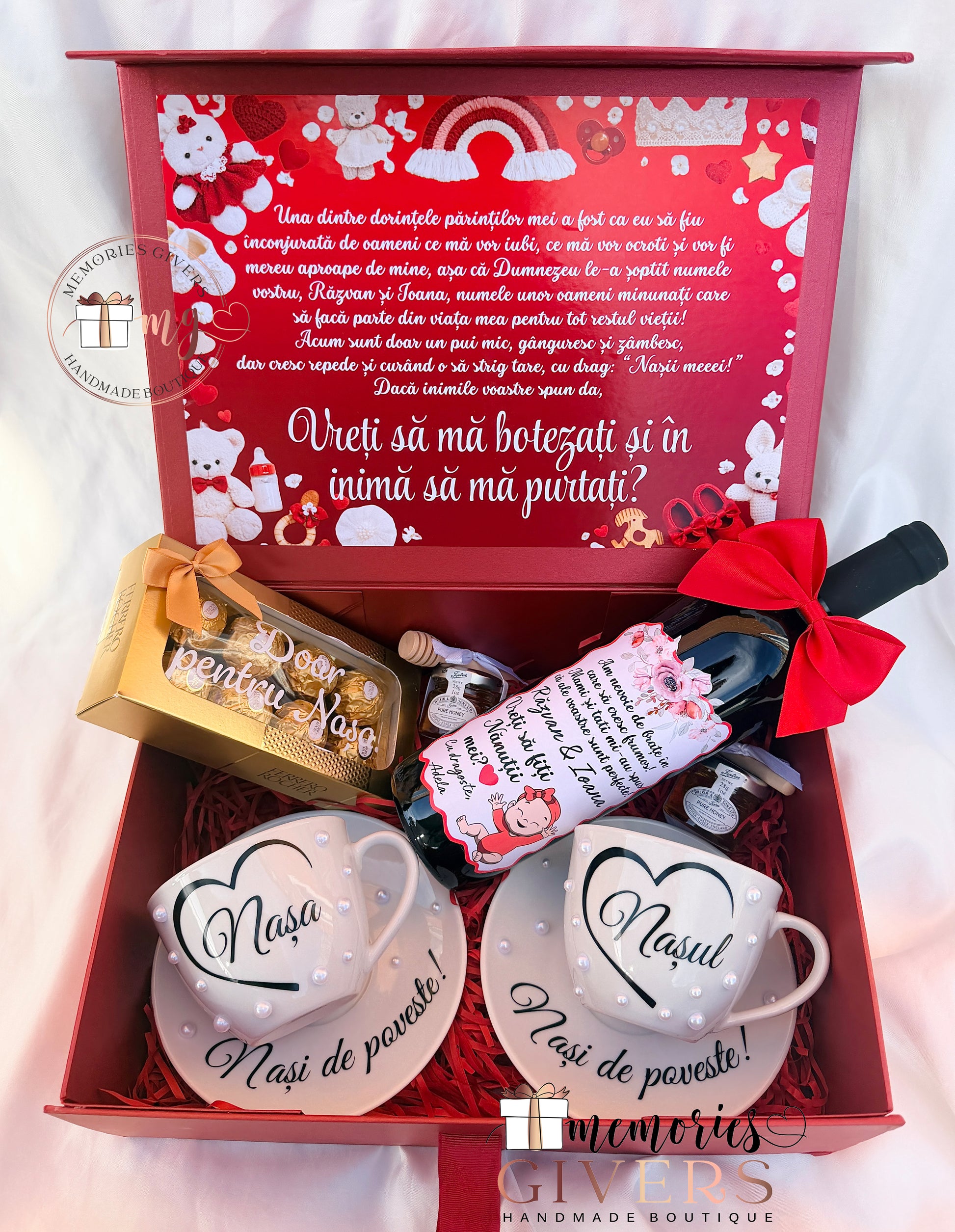 Cutie cu 2 căni, 2 farfurii și sticlă