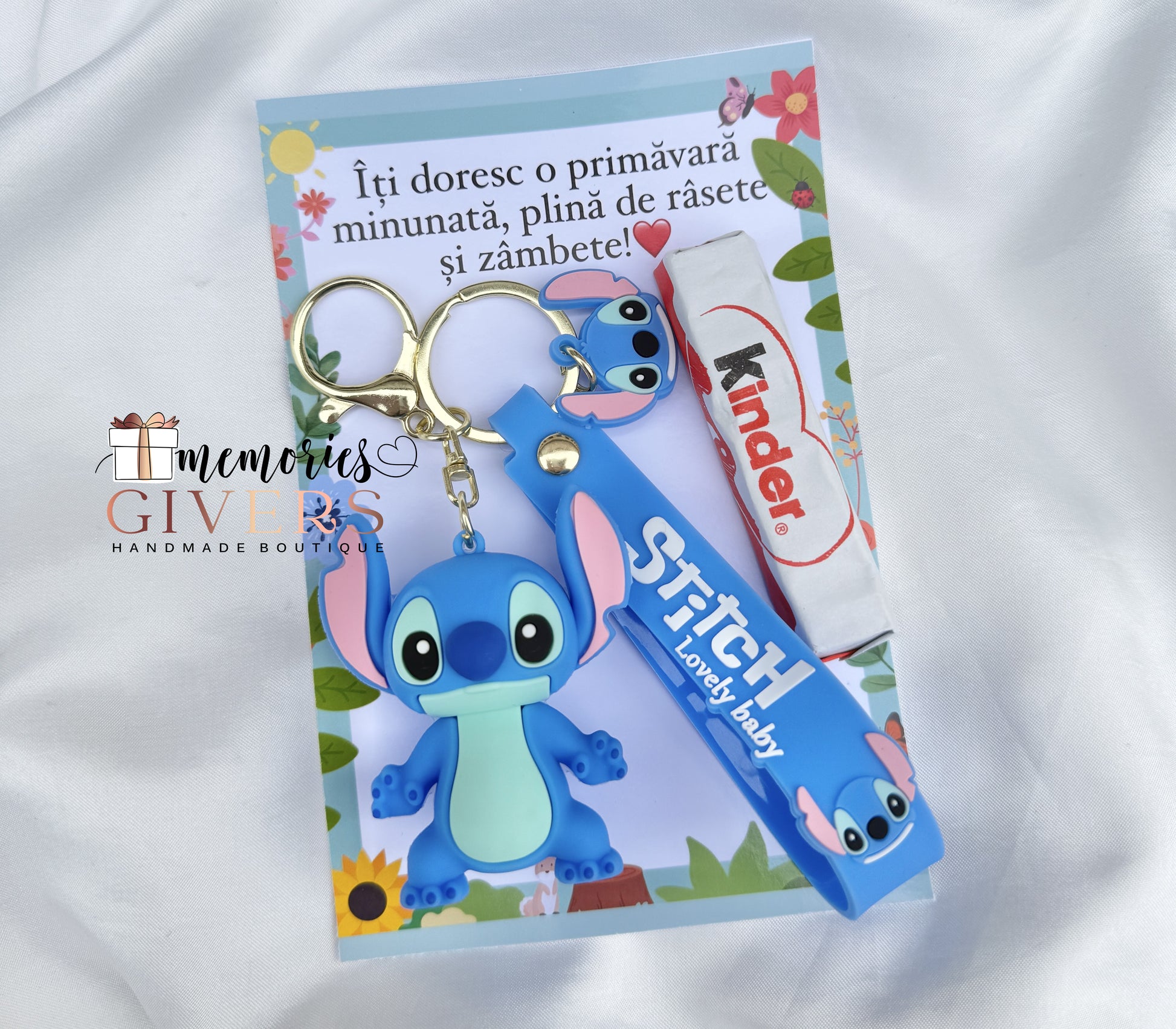 Mărțișor - Breloc pentru COPII, ciocolată Kinder și felicitare 10x15 cm