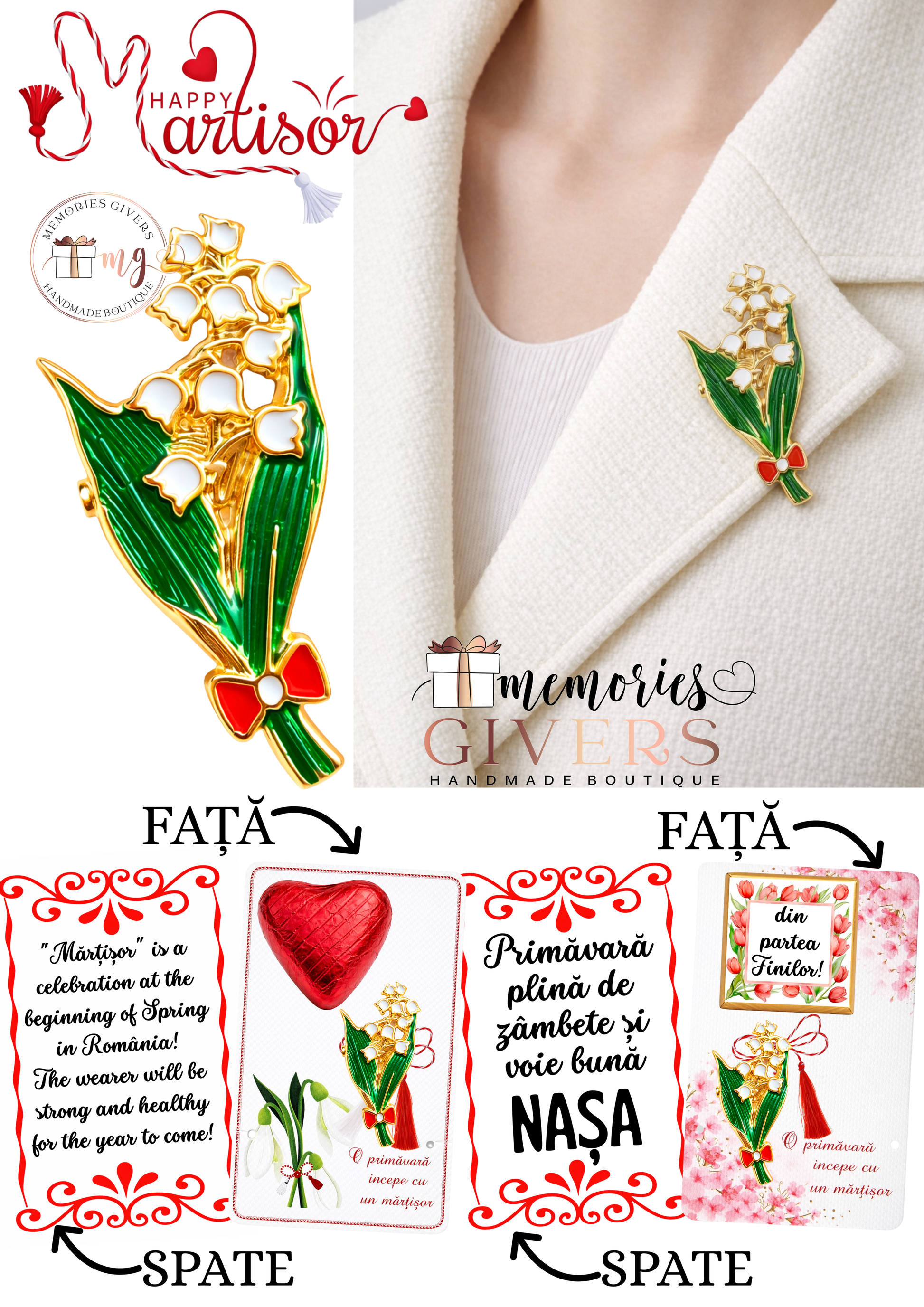 Broșă -LĂCRĂMIOARĂ- cu sau fără mesaj pe spate și ciocolată