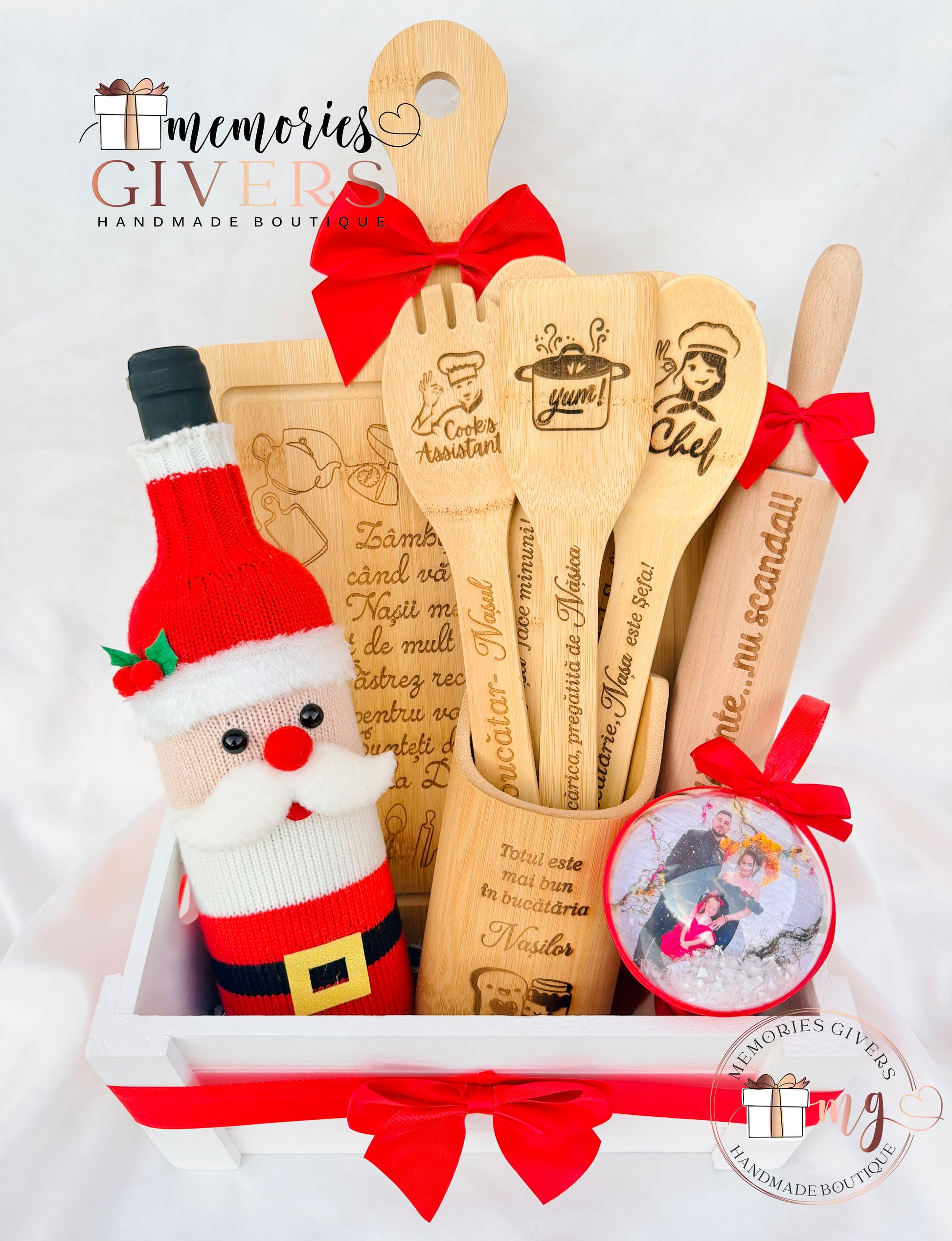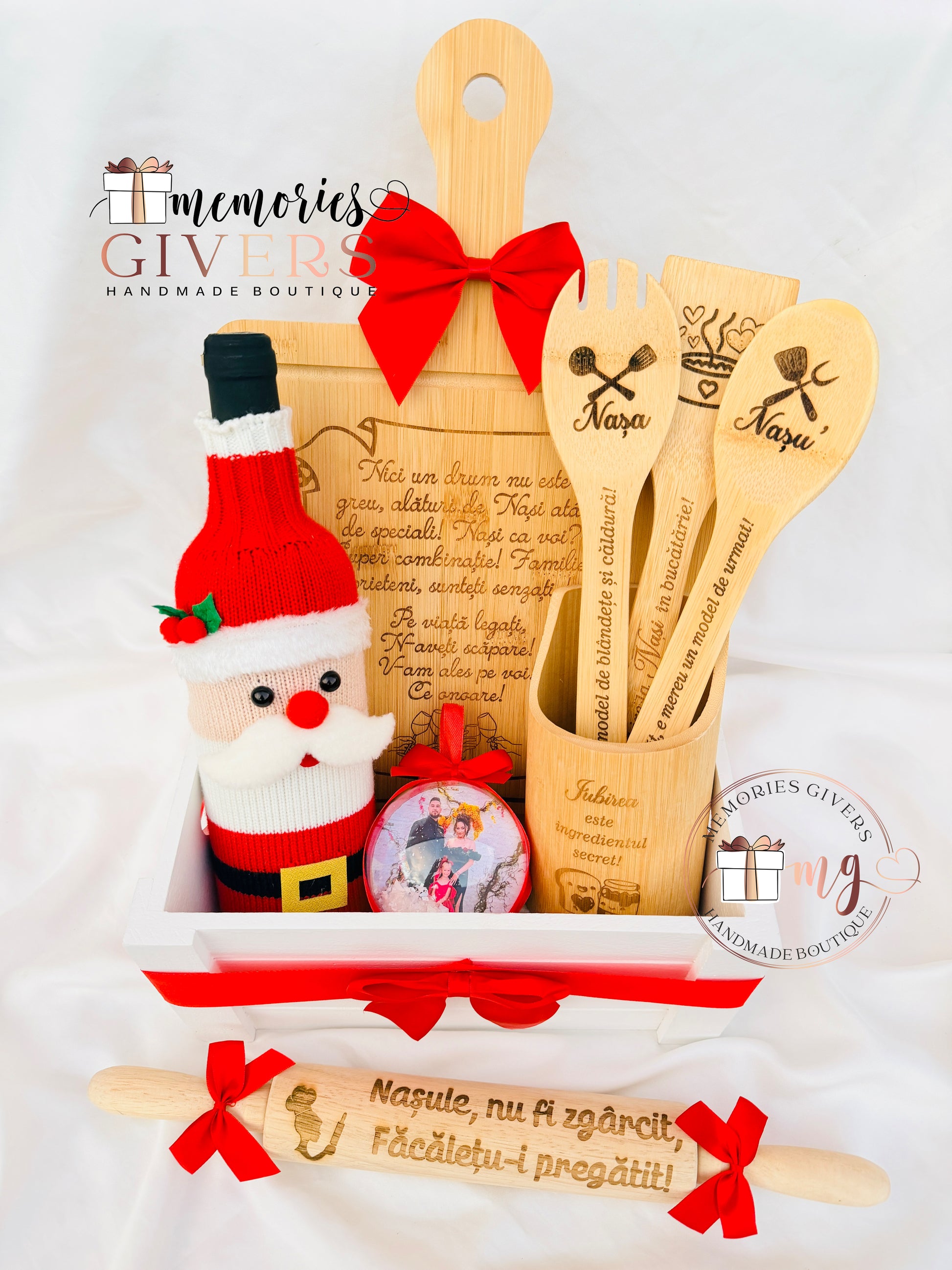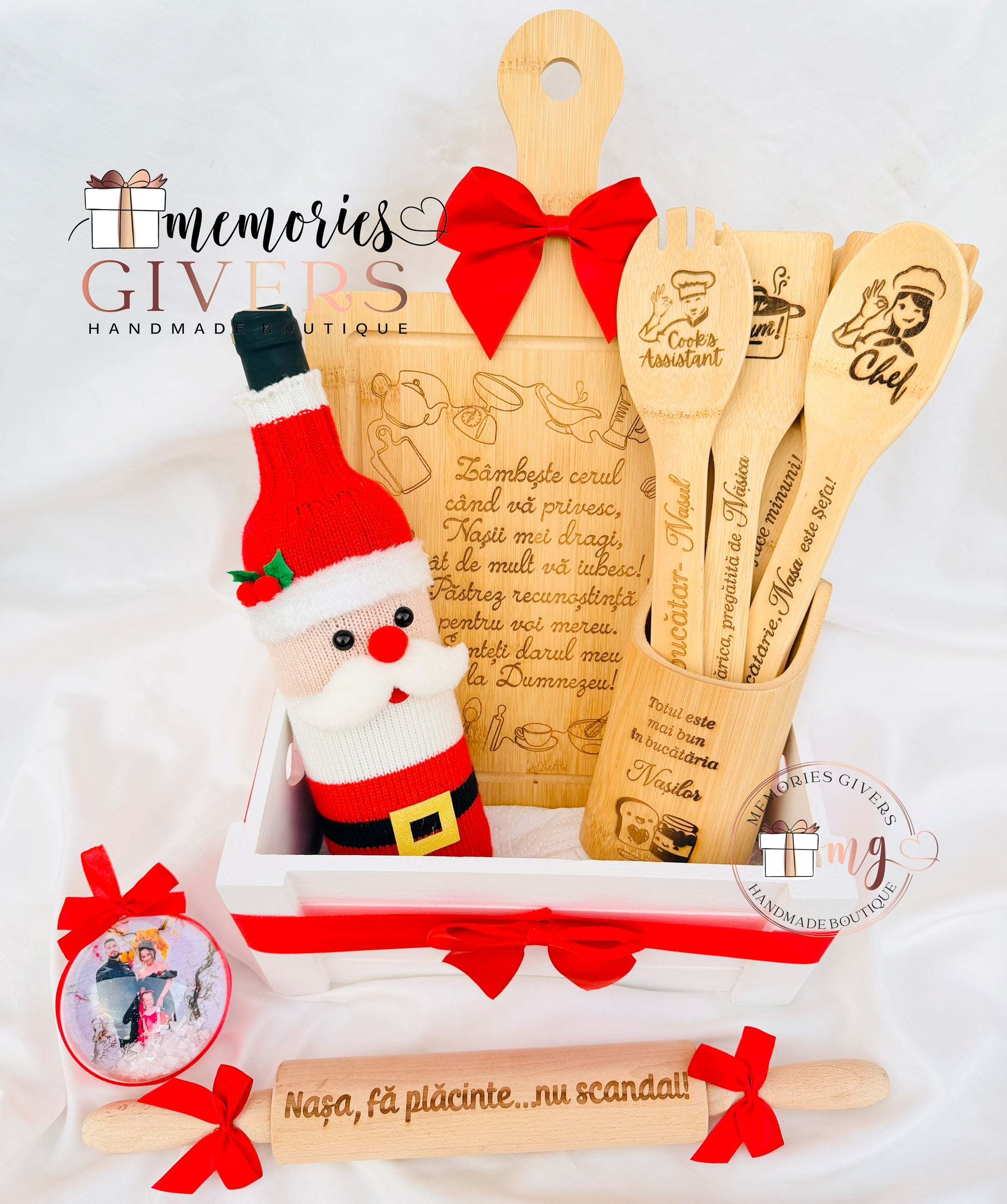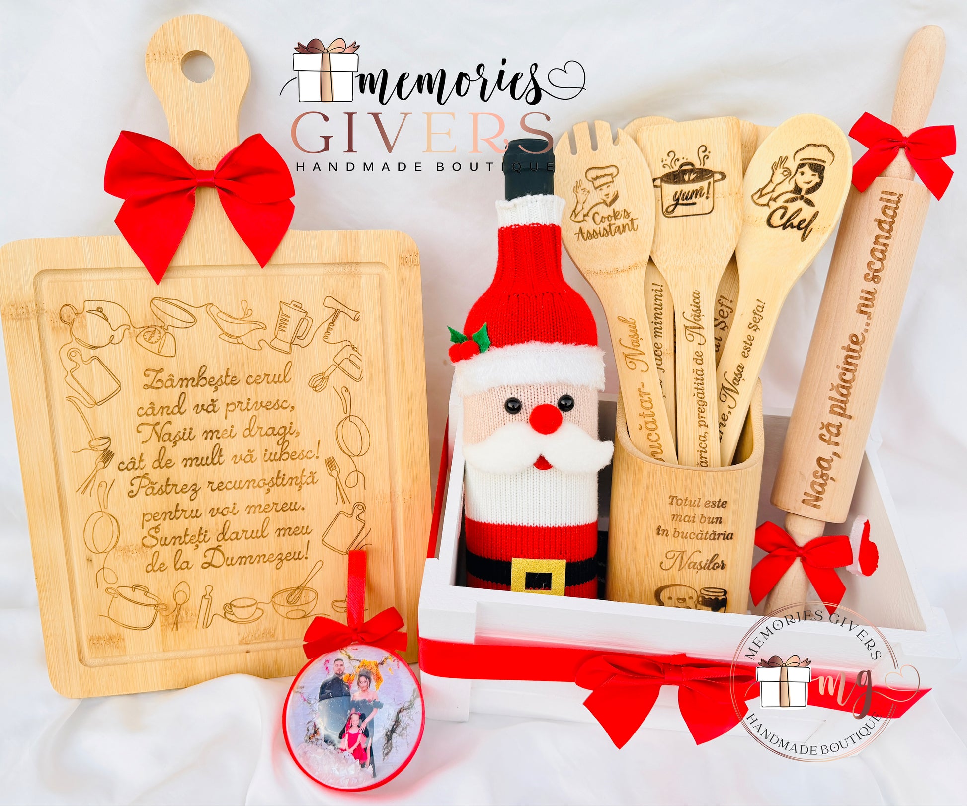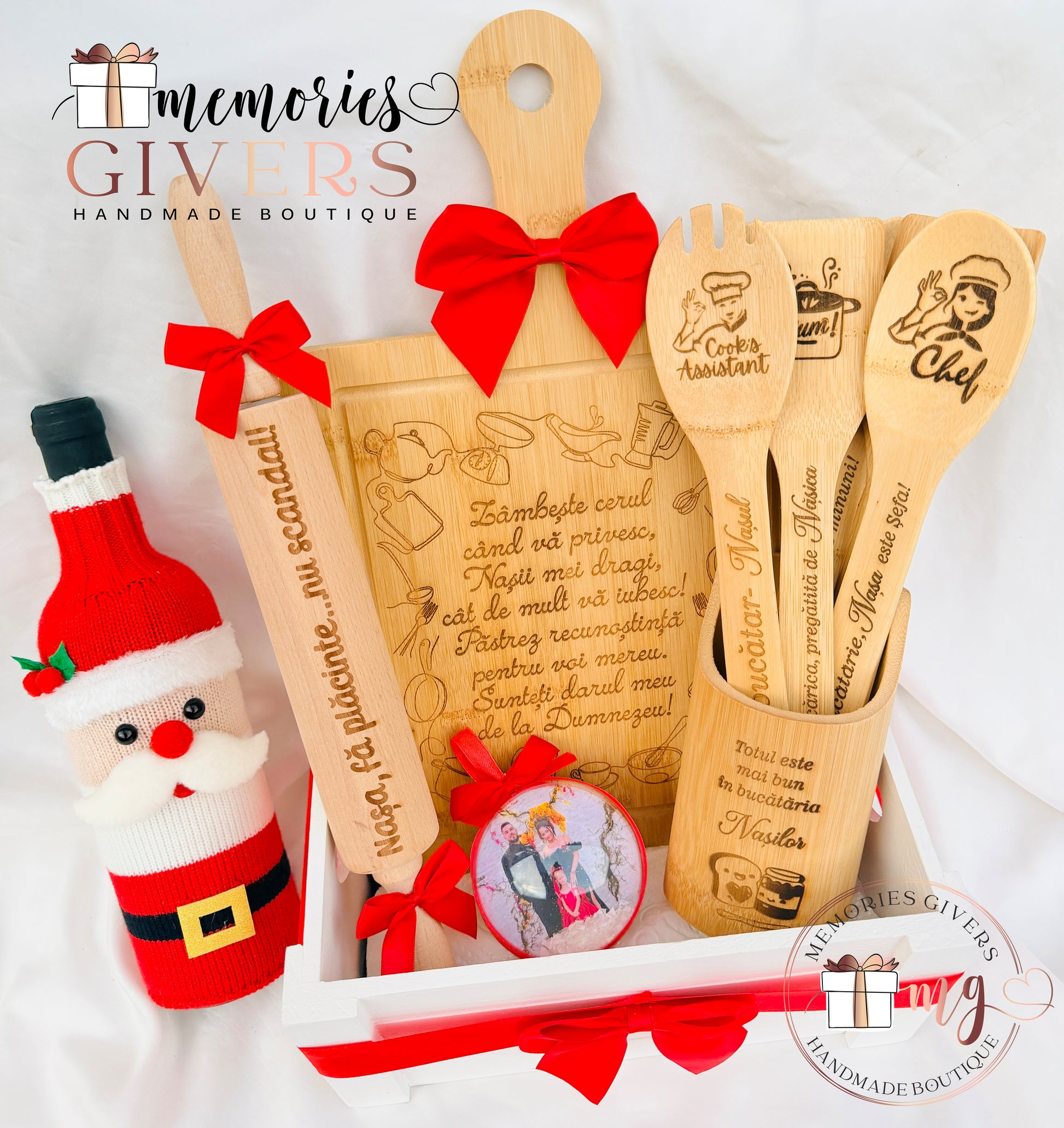 Set de bucătărie gravat din lemn pentru Nașii de Cununie/Botez sau Fini