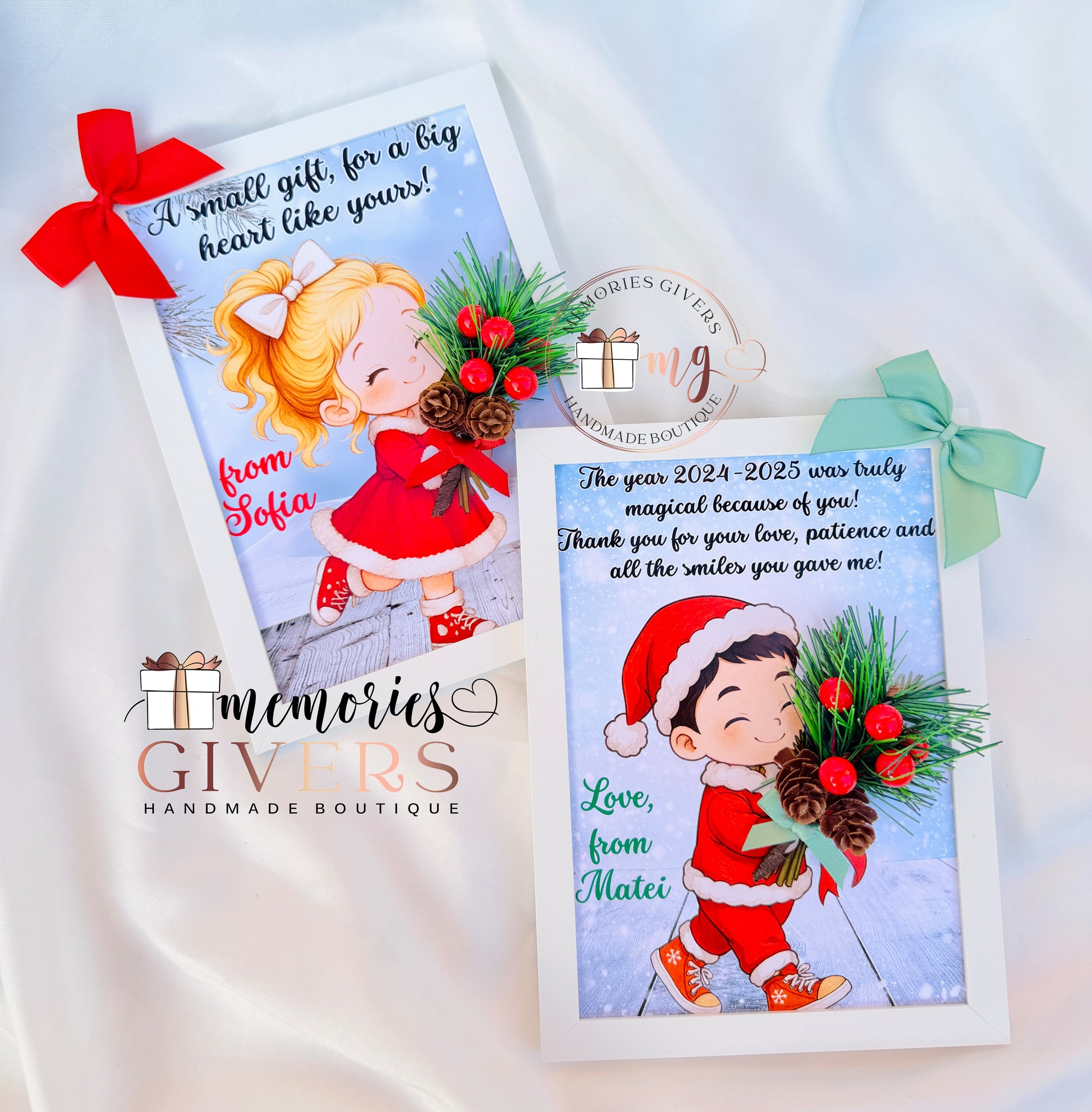 Tablou A5 18x13cm cu fetiță sau băiat și crenguță de brad